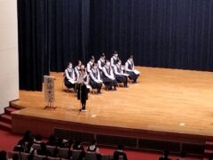 今年度のテーマは「表現」・「QOL(クオリティ・オブ・ライフ)」。各学年の代表2名ずつが壇上で堂々と自分の主張を述べました。学年発表の後には英語による特別発表もありました。