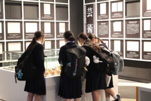 3日目は三内丸山遺跡へ。竪穴住居が点在する広い公園で、縄文時代の暮らしに思いを馳せます。館内では、日本最古の土偶や、黒曜石の矢じり等も間近で鑑賞できました。さらに、①土偶を作るチーム、②勾玉を作るチーム、③じっくり遺跡を見学ツアーの3チームに分かれ、各々が探究を深めます。ホテルに戻る前には道の駅【かづの あんとらあ】に立ち寄り、手作りの秋田名物【みそたんぽ】に舌鼓を打ちました。