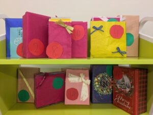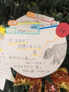 まず、クリスマスツリーに飾られている手作りのPOP(紹介カード)を読みます。