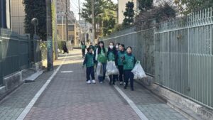 先日、グリーンバードさんのご協力のもと、有志の初・中・高等科生で学校近辺のゴミ拾いを行いました。ゴミがたくさん落ちている場所を教え合ったり、掴みにくいゴミを協力して拾ったりしながら学年を超えて交流することができました。