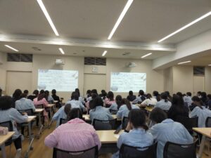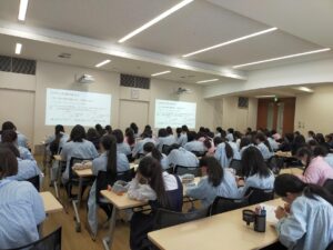 どの発表者も学んだことを羅列するのではなく、自分なりに発展させ、深めて上手に発表していました。聞いている生徒も、発表を聞いて、学習内容を振り返ることができたようでした。