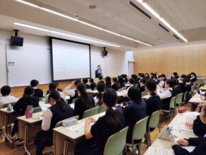 中1は、杉並警察署のスクールサポーターの方をお招きして、安全教室を行いました。
