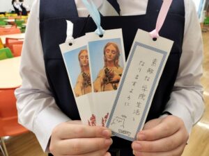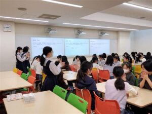 新中1歓迎会 新中1歓迎会 2月21日、4月から中等科に入学する新入生を対象とした歓迎会が開催されました。 歓迎会では、まず新入生がグループに分かれて自己紹介を行い、交流を深めました。その後、現中学1年生が企画した「光塩かるた」と「光塩クイズ~究極の四択~」に挑戦しました。 はじめは緊張した様子だった新入生たちも、活動が進むにつれて次第に笑顔が見られるようになりました。最後には、在校生から手作りのメッセージ付きしおりが贈られ、会は温かい雰囲気の中で締めくくられました。