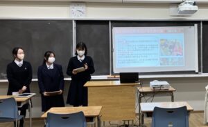 今回が最終回になる高2。3人がマラウイの教育の現状、マラウイの学校トイレを含めた衛生・学習環境問題、他のNPOやNGO活動を参考にして、NPOせいぼのさらなる飛躍のためにできることについて発表しました。中学生以来の「せいぼ」活動のまとめです。