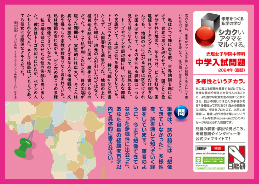 「シカクいアタマをマルくする。」に本校の入試問題が取り上げられました! 「シカクいアタマをマルくする。」に本校の入試問題が取り上げられました! 日能研 「シカクいアタマをマルくする。」に光塩の国語の入試問題が取り上げられました! 詳細はこちら