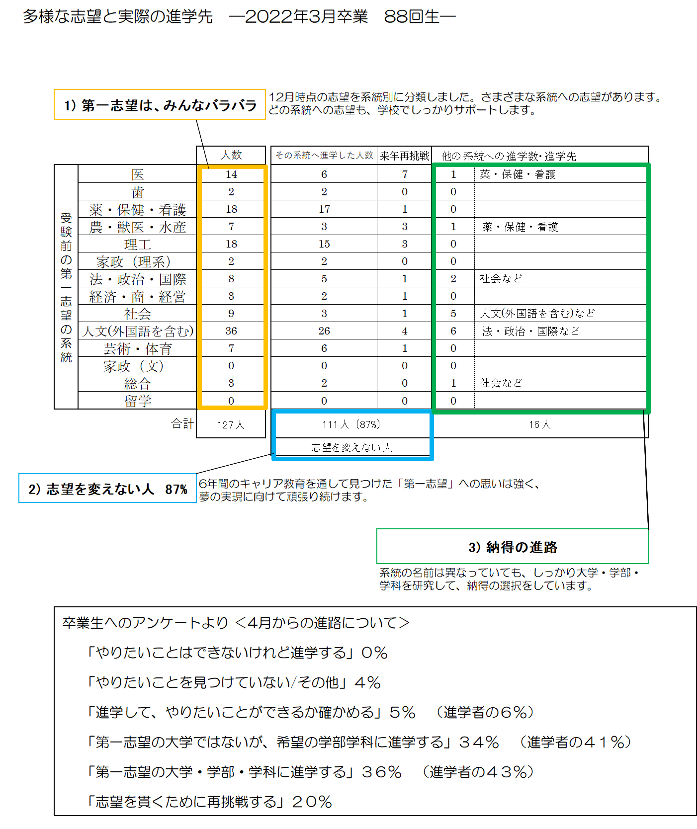 | 卒業年 | 卒業生数 | 四年制大学合格数 (進学数) |